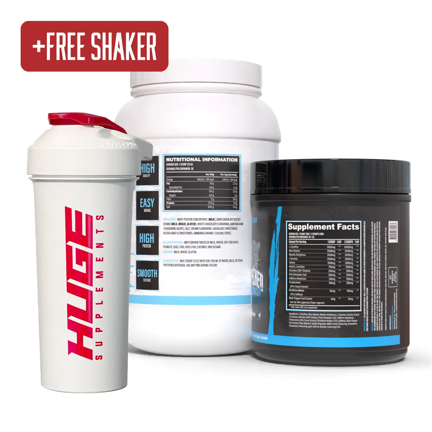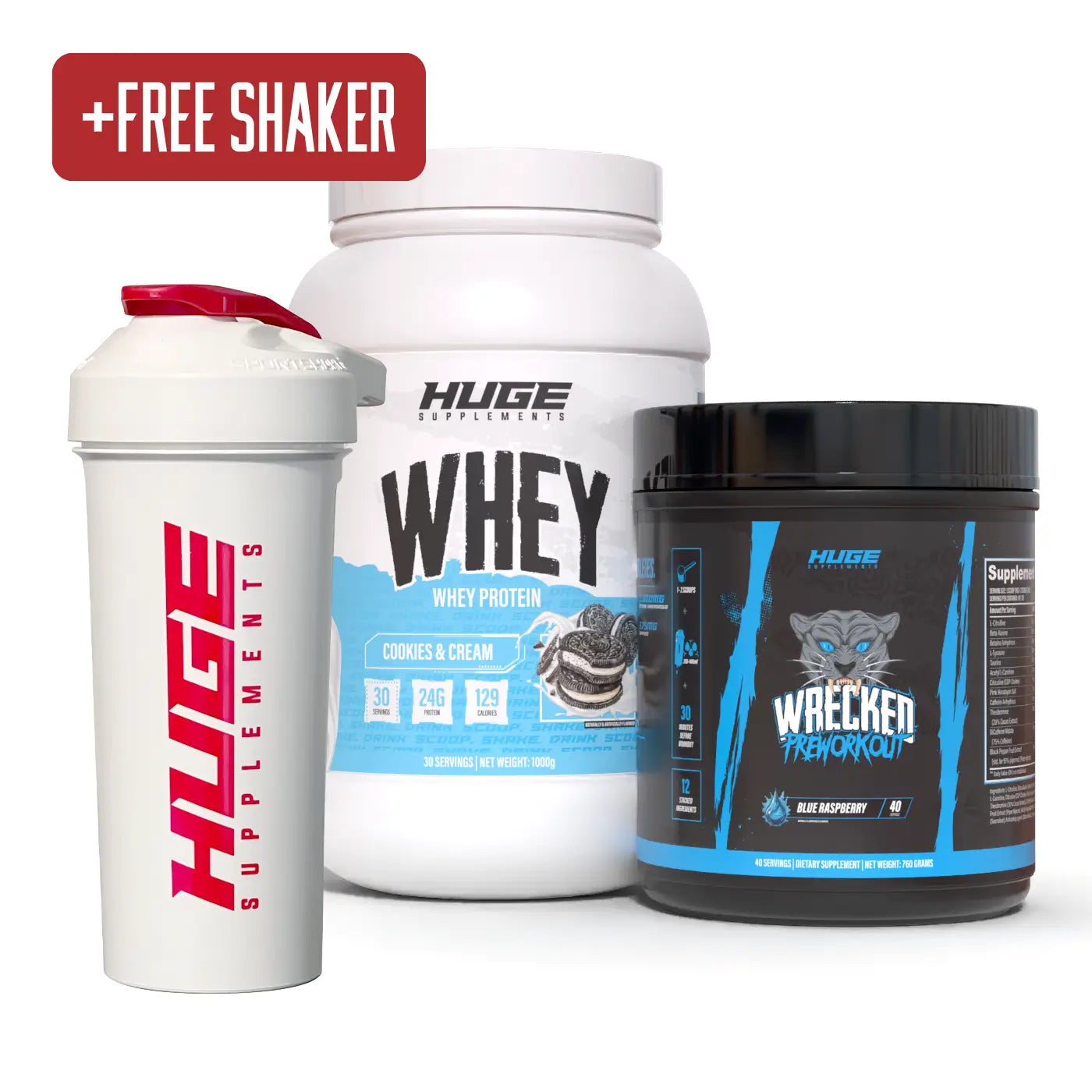 Complementing Wrecked is Huge Whey. Huge Whey is the ultimate whey protein supplement, that can assist you in reaching your fitness and bodybuilding goals. Each serving packs 25 grams of protein to fuel your body with the building blocks it needs for optimal performance and growth.